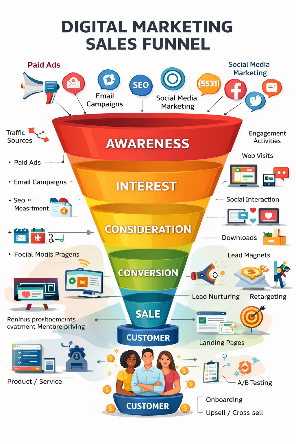 Small Brands Media designs complete marketing funnels that convert website visitors into closed transactions. We build top-of-funnel awareness through SEO-optimized blog content and social media, capture middle-funnel prospects with neighborhood guides and market reports that collect emails, and nurture bottom-funnel leads through automated email sequences in your CRM. Our funnels integrate with Follow Up Boss, kvCORE, LionDesk, and other platforms to track every touchpoint from first click to closing. We implement conversion-optimized landing pages, lead magnets like home valuation tools and buyer guides, and drip campaigns that stay top-of-mind. Most agents have websites without funnels—we build systems that convert traffic into clients.